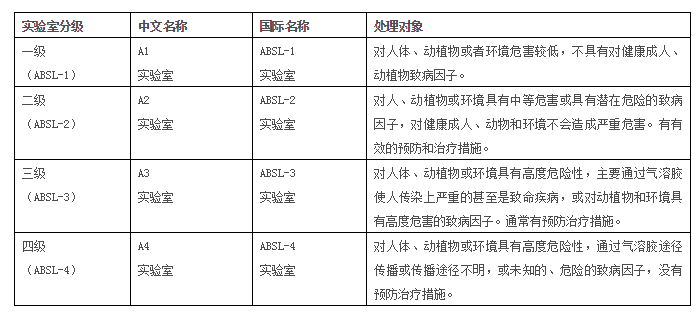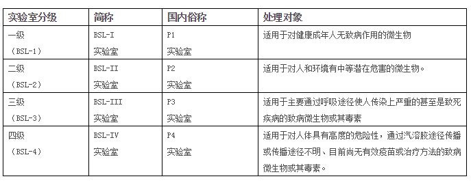 (来源: 生物安全实验室建筑技术规范 GB 50346-2011)